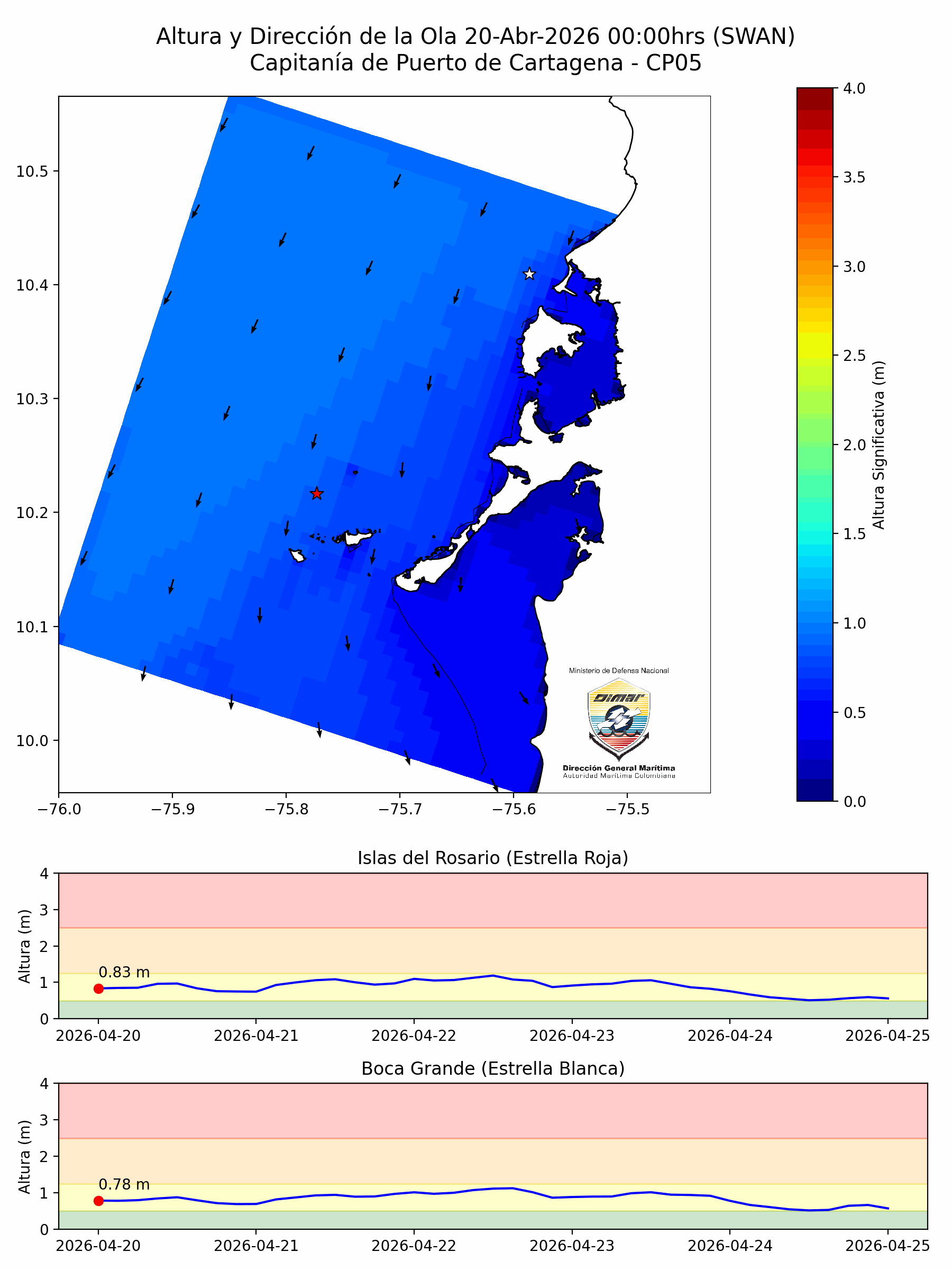 Área Costera: Poco nuboso con tiempo seco. Temperatura ambiente oscilará entre 25°C y 28°C Predominan vientos de dirección noreste, con velocidades de 1 a 16 nudos (Fuerza 1-4).