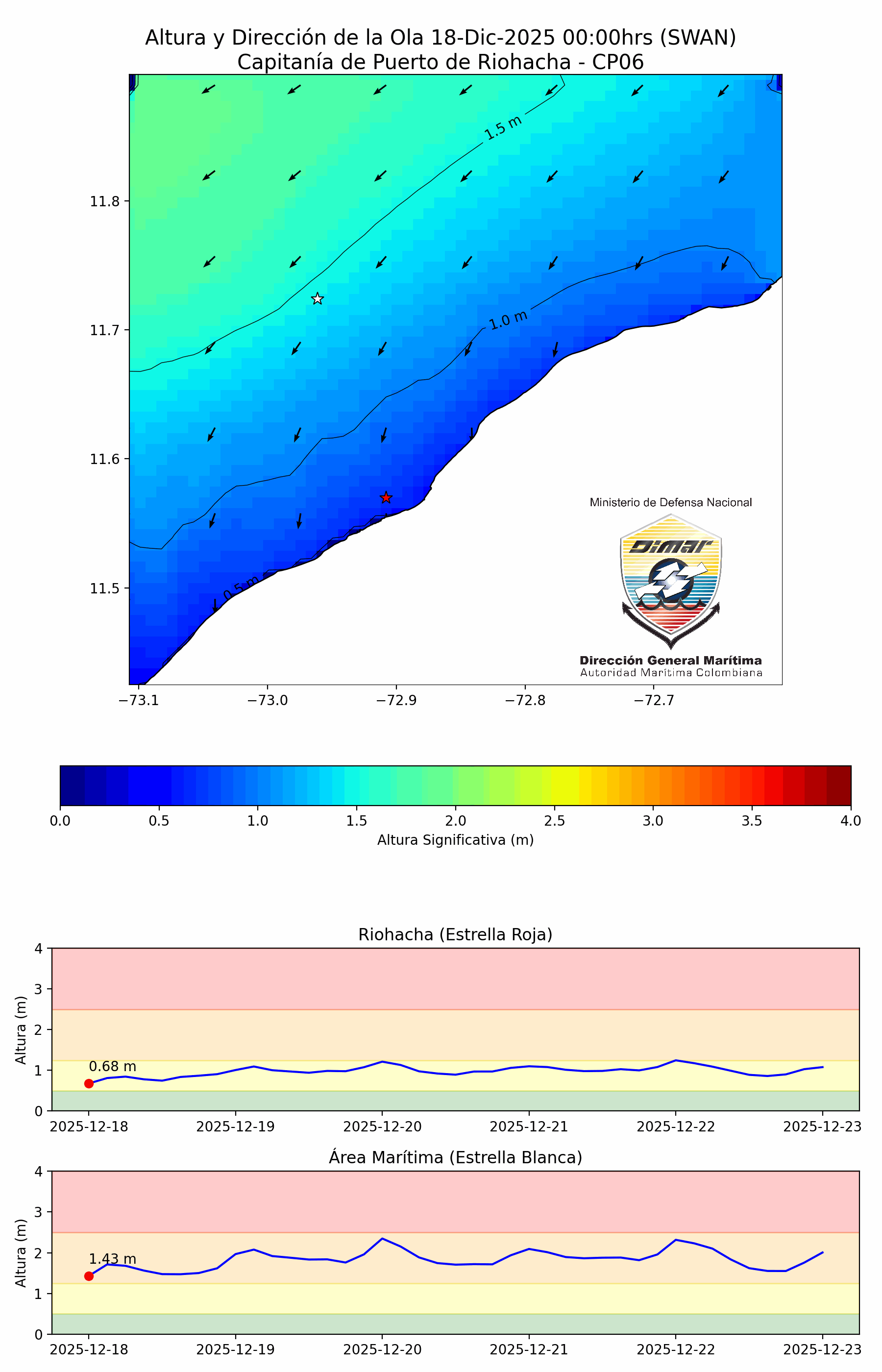 Área Marítima Cielo despejado a mayormente despejado con tiempo seco. Vientos de dirección variable, con velocidades de 11 a 20 nudos (Fuerza 4-5). Altura significativa de la ola oscilará entre 0.9 y 2.0 metros (Mar 3-4). Se recomienda extremar las medidas de seguridad en el desarrollo de actividades marítimas.
